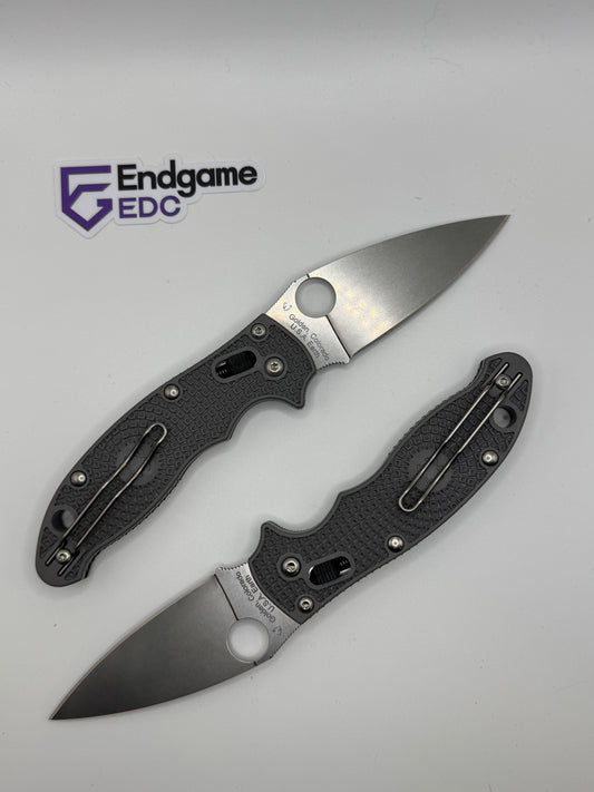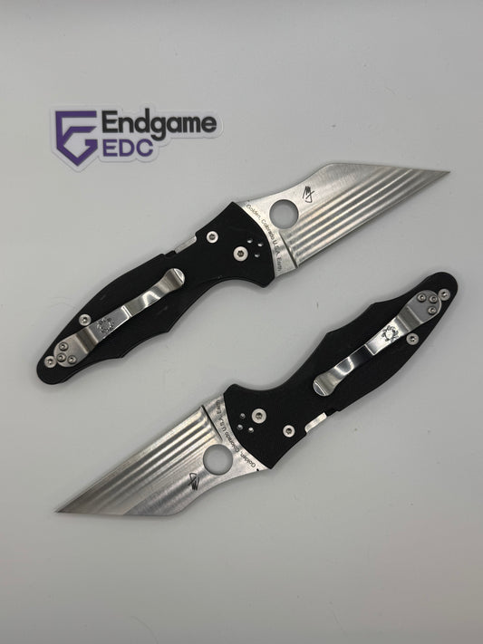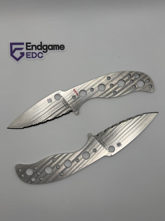 • "sticker shadow" - faint stain of the ID sticker that Spyderco put on the knife. We have done our best to clean each blade, but unfortunately were unable to remove it in some cases.