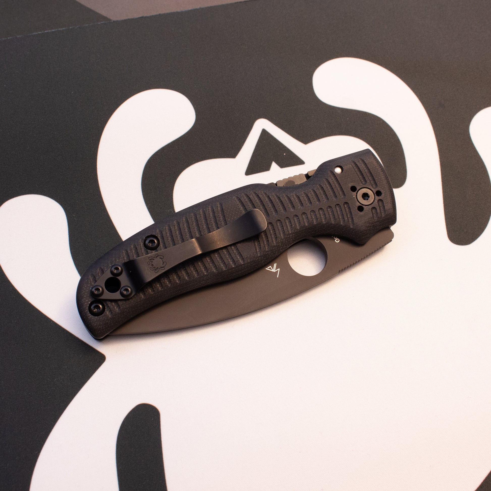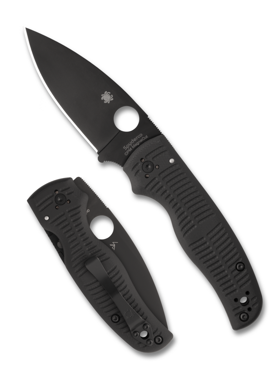 The Shaman® is one of Spyderco’s most capable and reliable folding knives. Now it is also a proud member of our Salt® Series of cutting tools purpose designed for use in and around the water. The heart of the Shaman Salt is its broad, full-flat-ground blade, which is crafted from CPM® MagnaCut®—a remarkable particle metallurgy steel that challenges conventional steelmaking wisdom to deliver an impressive synergy of toughness, edge retention, and superior corrosion resistance. Optimized for tactical applications, the blade is cloaked in a Diamond-Like Carbon (DLC) coating to reduce its reflective signature. It is paired with a handle constructed with nested, skeletonized stainless steel liners and contoured black G-10 scales. The liners form the foundation of the knife’s high-strength Compression Lock® mechanism, while the scales are meticulously machined with Spyderco’s signature Caribbean Bi-Directional Texture™ pattern. To complement the DLC-coated blade, this Shaman Salt’s liners, four-position pocket clip, and all other hardware are also made from ultra-corrosion-resistant materials and have low-profile black coatings.