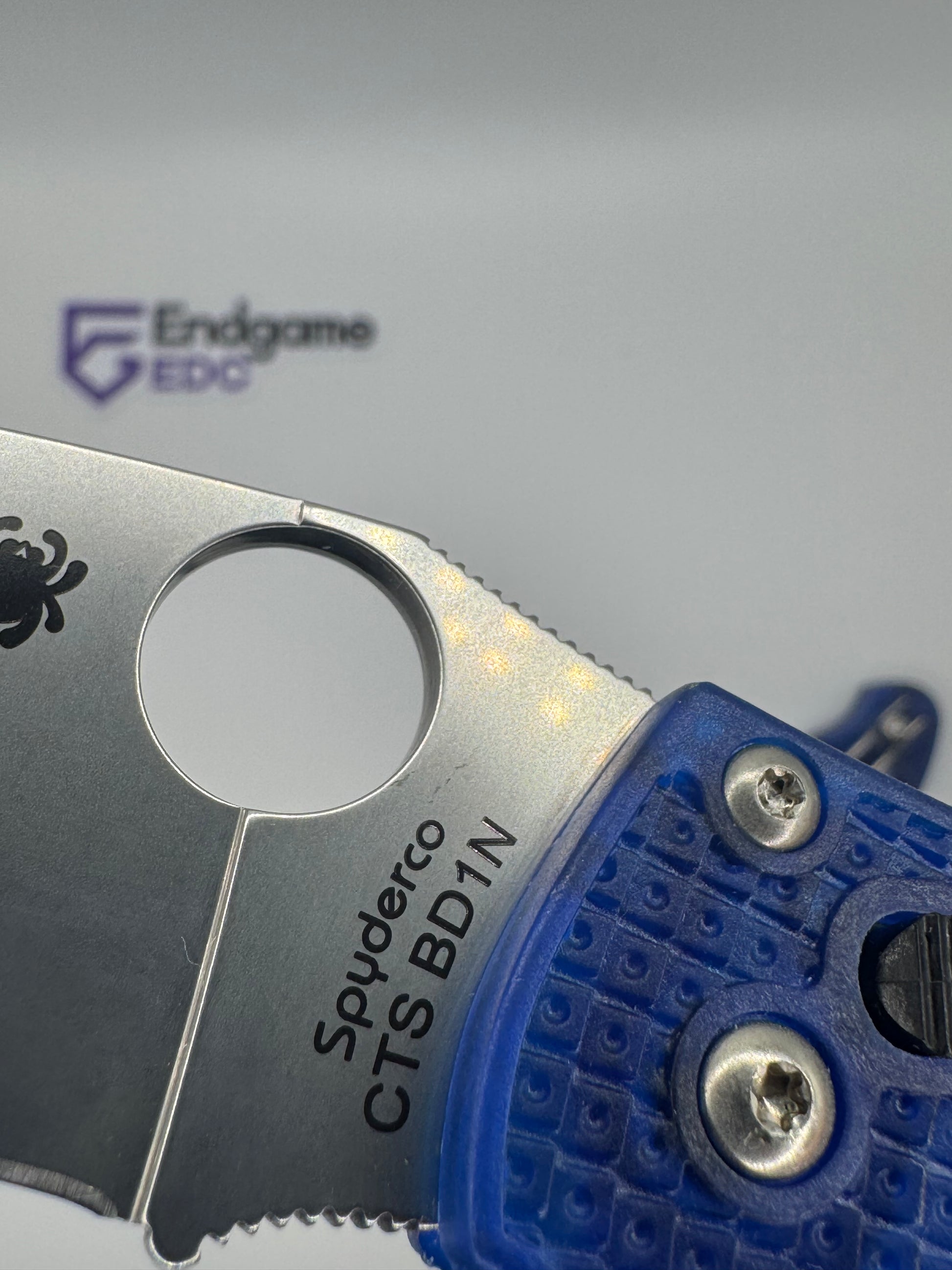 The long-running and popular Spyderco Factory Seconds program offers fully functional, premium knives that exhibit minor cosmetic variations or non-critical deviations from "first quality" units at a substantial discount. These knives deliver the same reliable high performance and functionality as their primary production counterparts, but are specially marked with a notch near the hole on the right side (clip side) of the blade to denote that they were sold as factory seconds and thus ineligible for warranty services. They also do not come with any packaging or documentation. See pictures below for notch examples.