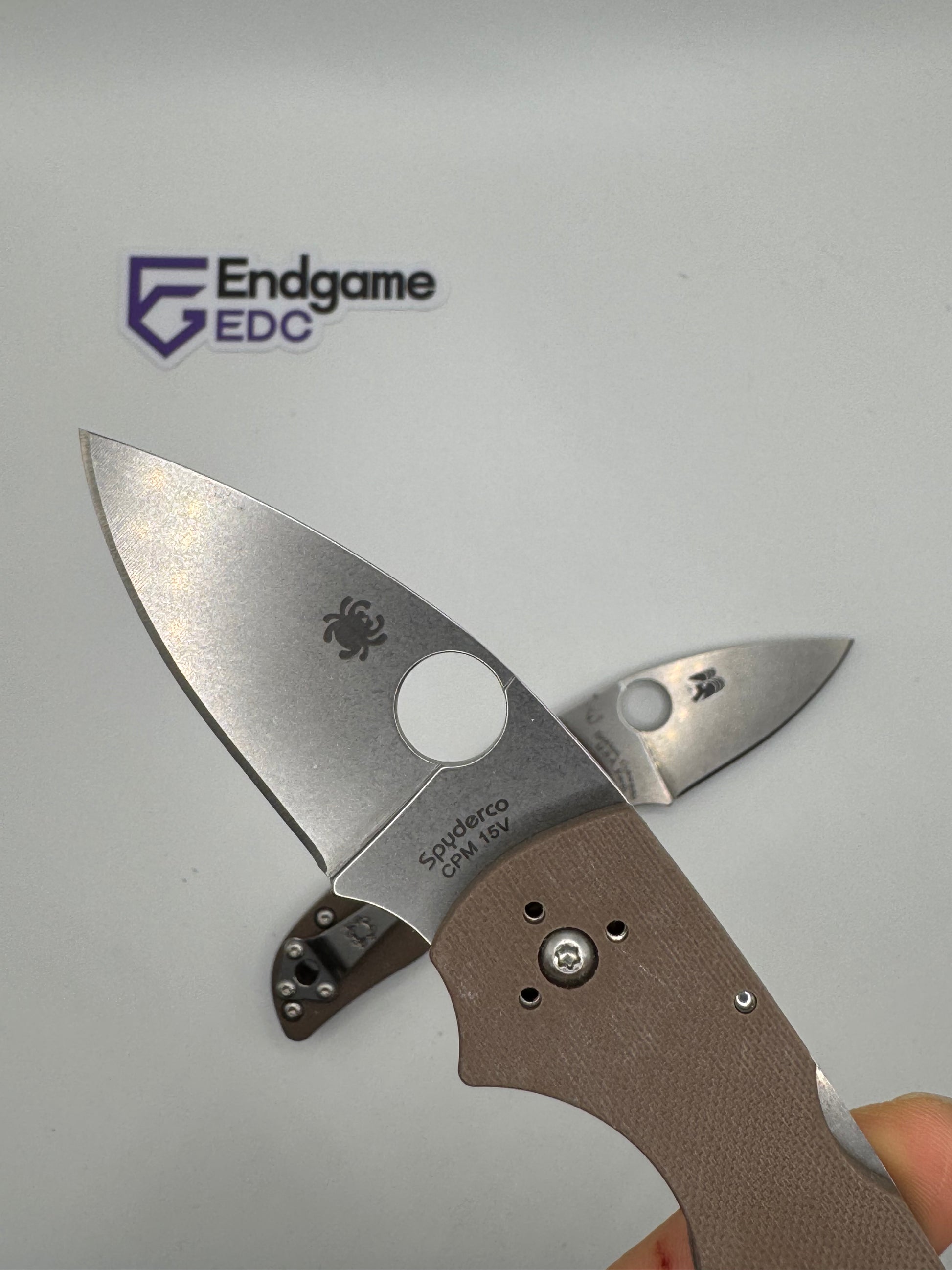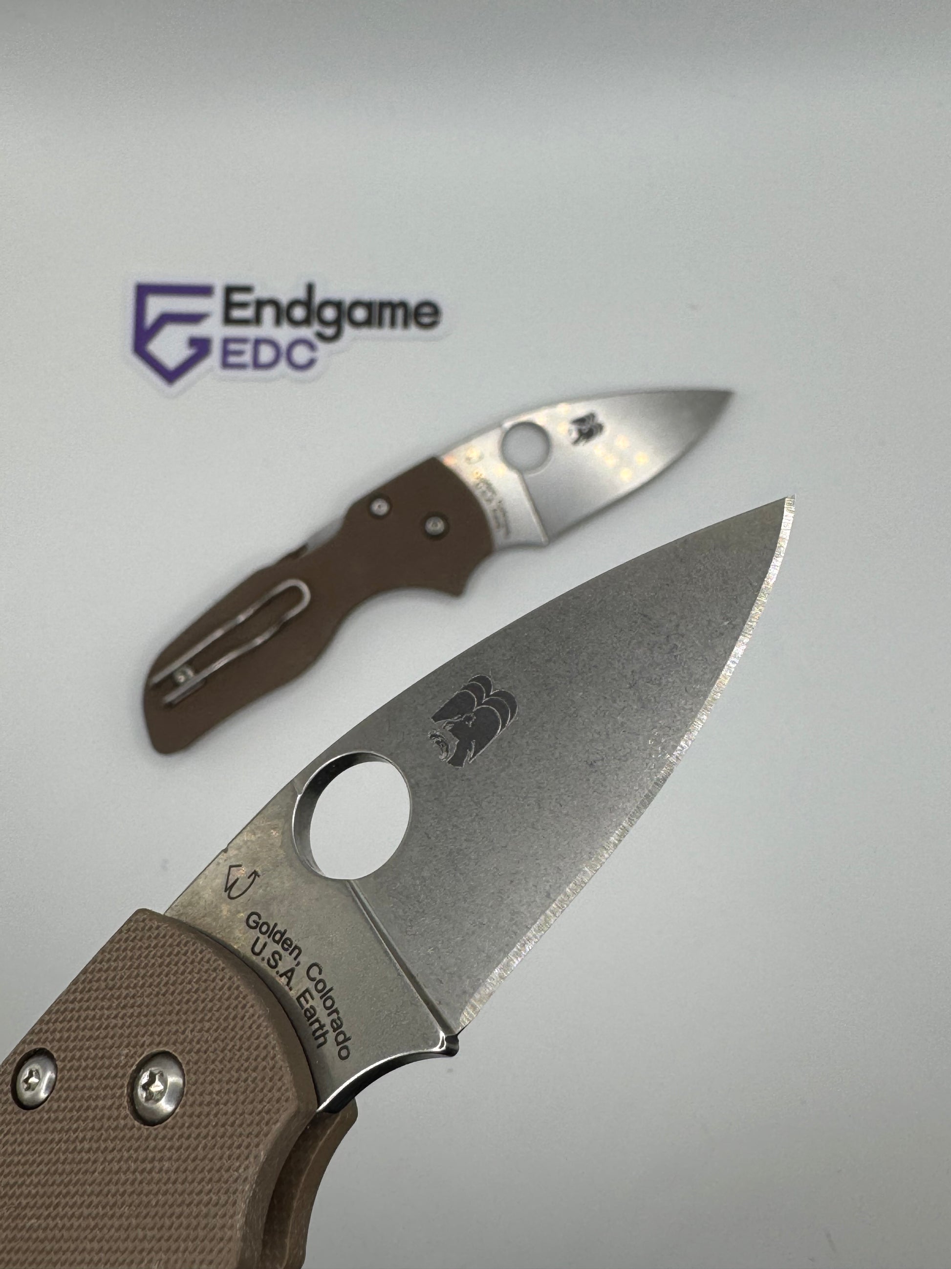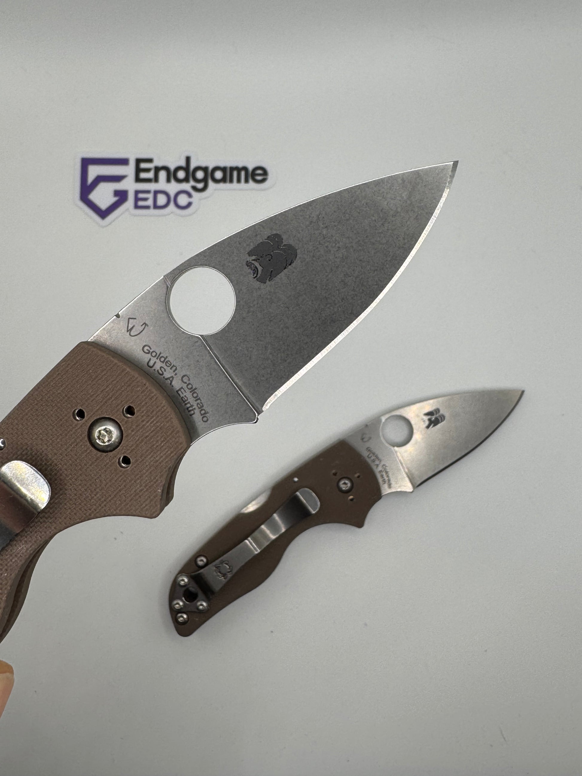 - "sticker shadow" - faint stain of the ID sticker that Spyderco put on the knife. We have done our best to clean each blade, but unfortunately were unable to remove it in some cases.