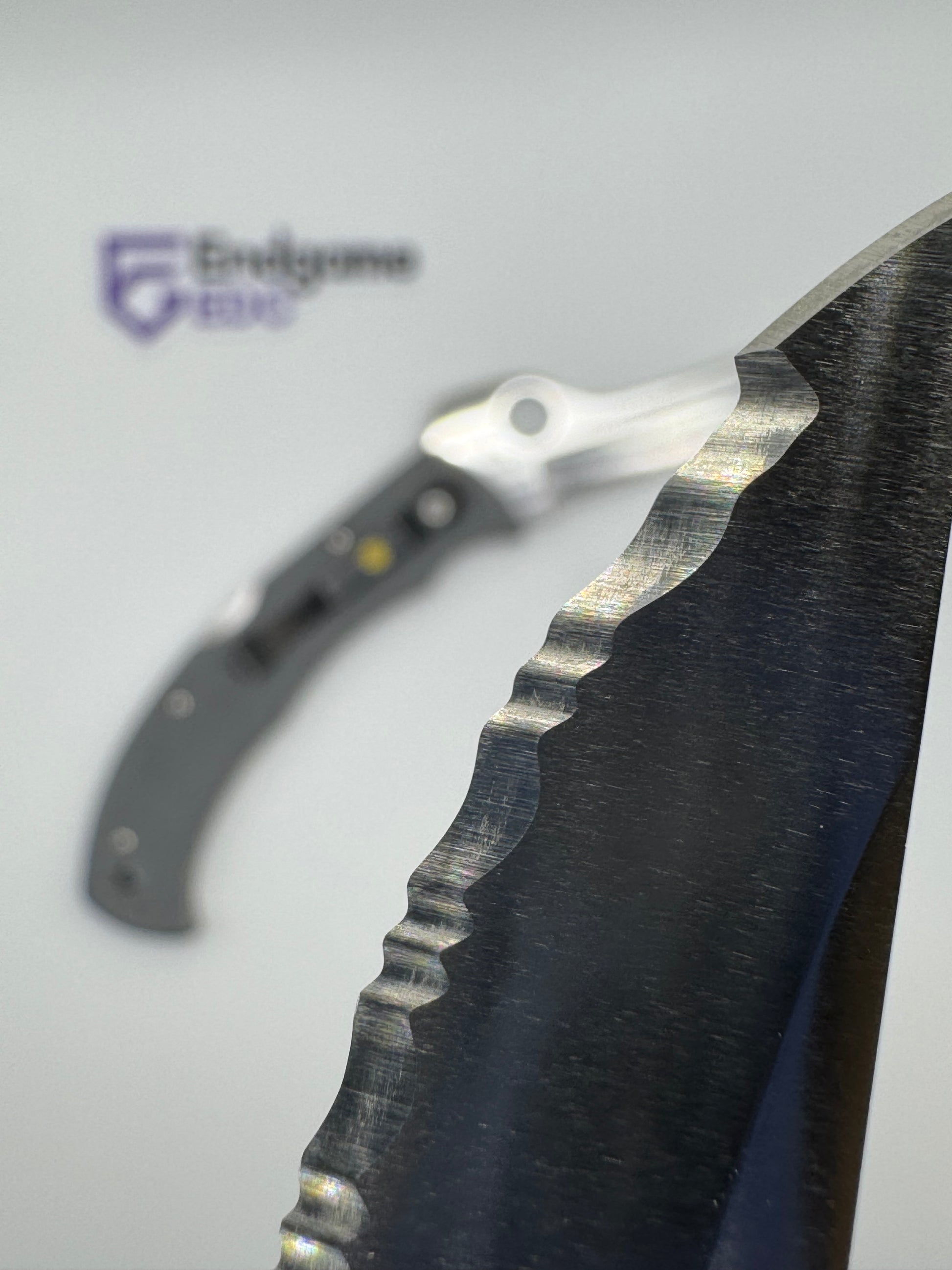 While it is unconventionally shaped with the negative blade angle and features serrations, I still highly recommend it as a "surprisingly great" EDC choice. With a Sharpmaker, sharpening serrations really is not a challenge anymore. Give it a try, I bet you'll be impressed with the craftsmanship, materials, and performance of this unique, long gone limited edition model.