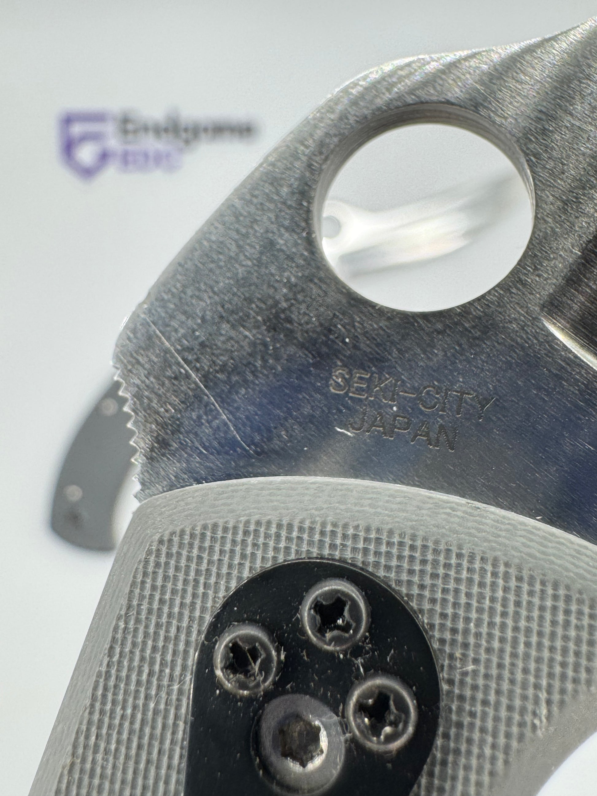 Aside from the general scuffs and scratches, most these units were "2nd'd" for the serration pattern. For this model, they tried a new serration pattern but near the tip it ended up not looking the way they wanted, so a very large portion of the finished batch ended up getting held back and sold as seconds. This particular 2022 Sprint Run was overall quite an ordeal for Spyderco to produce and as a result they might not make this model ever again. Here's the story as told by Sal on Spyderco Forums: