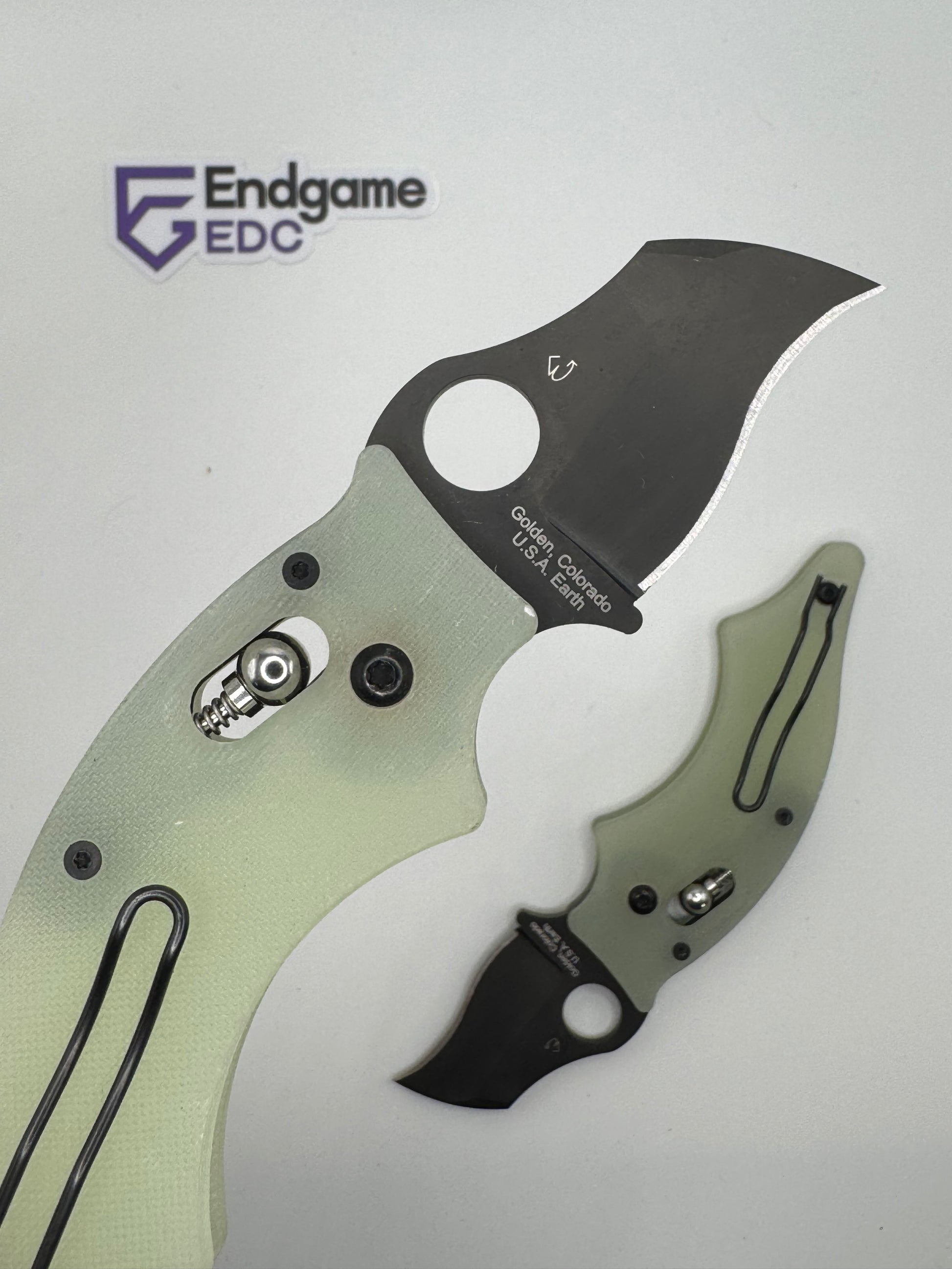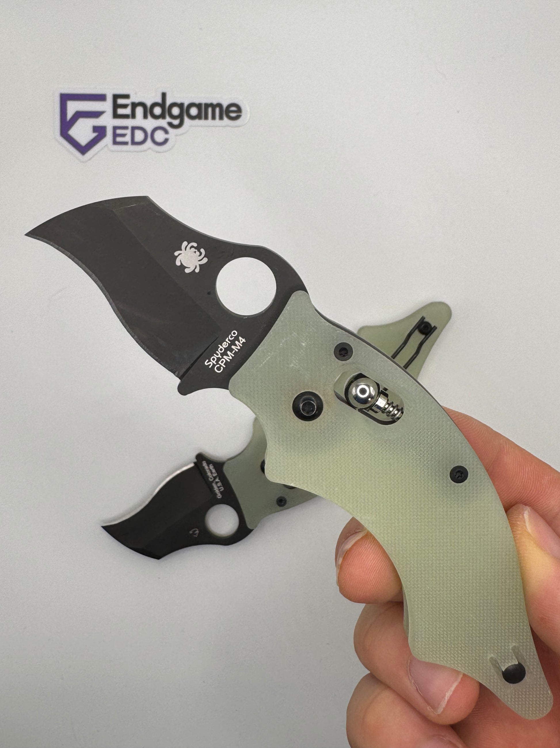These Dodos are both limited edition exclusive variants commissioned by BladeHQ (M4) and Saint Nick's Knives (4V) but we were able to get a very limited supply of factory seconds directly from Spyderco. These will never be restocked, and most likely never recommissioned by the stores that initially ordered them. It's a shame, since the Dodo is one of Spyderco's most unique knives and surprisingly utilitarian for warehouse-oriented duty. I personally EDC a serrated M4 Dodo (also recently released) for my warehouse work and it has faithfully opened and taken down hundreds of boxes of all sizes without needing sharpening. It also features the retro original ball bearing lock design, which is special for being one of the few lock designs that actually gets stronger (instead of degrading) with wear over time.