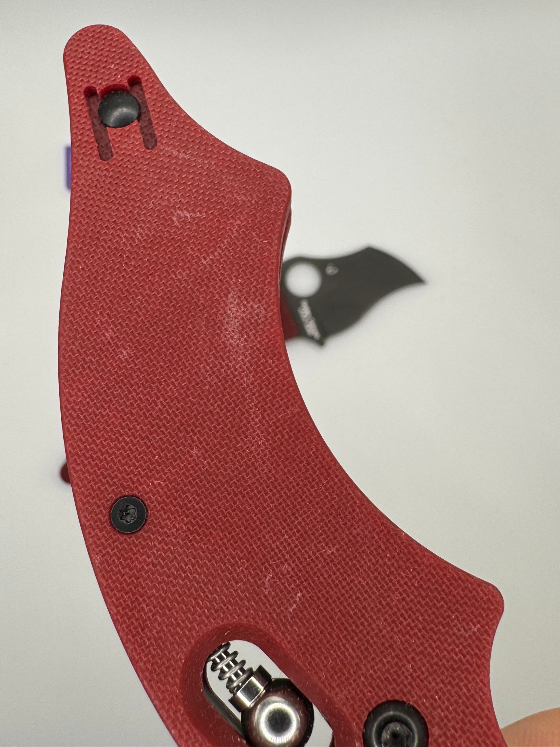 - Spine and/or hole is not chamfered (enough?) and feel somewhat "sharp" (but not enough to cut you) - easy fix with a sharpmaker rod/small file.