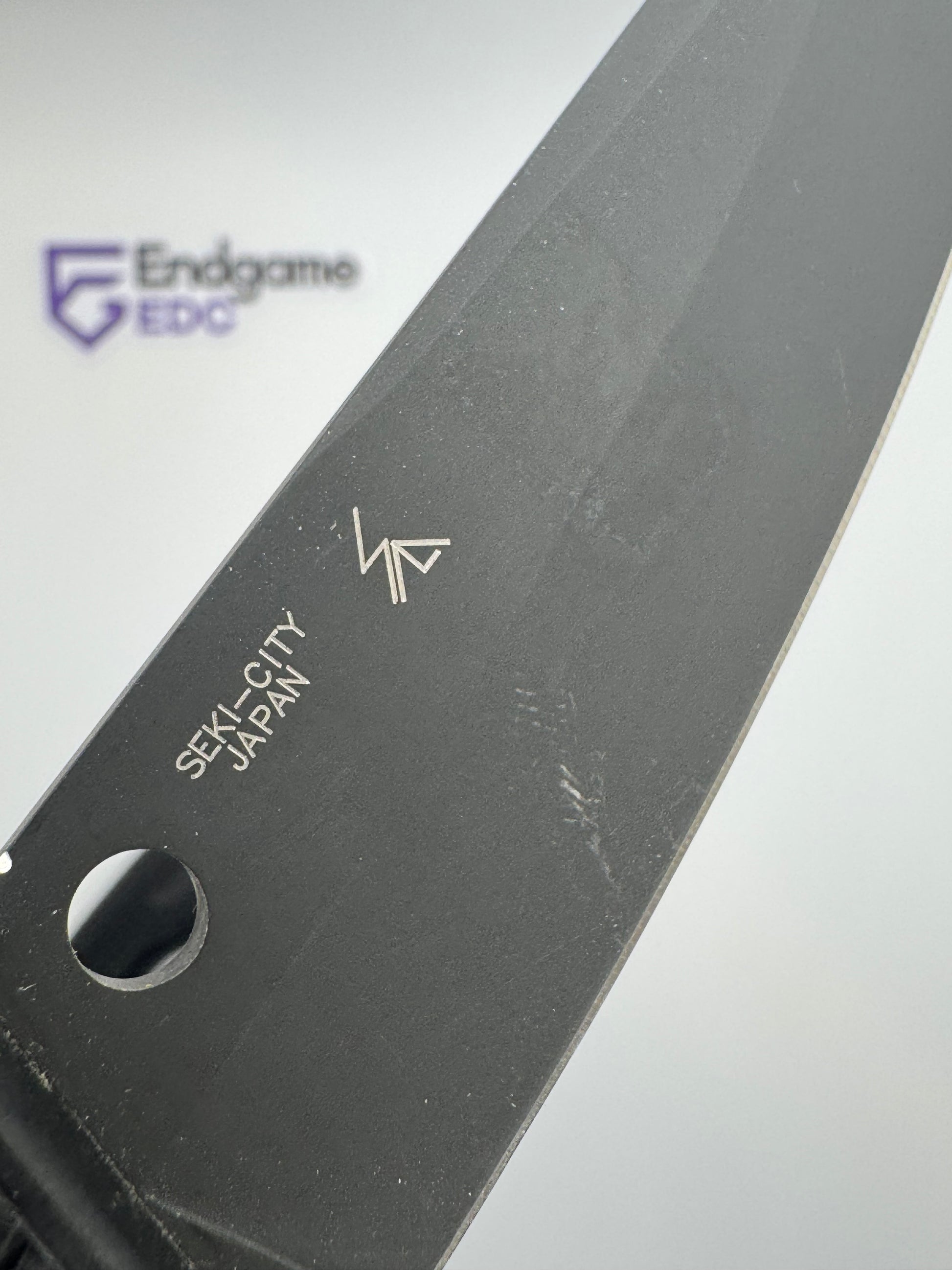 - "sticker shadow" - faint stain of the ID sticker that Spyderco put on the knife. We have done our best to clean each blade, but unfortunately were unable to remove it in some cases.